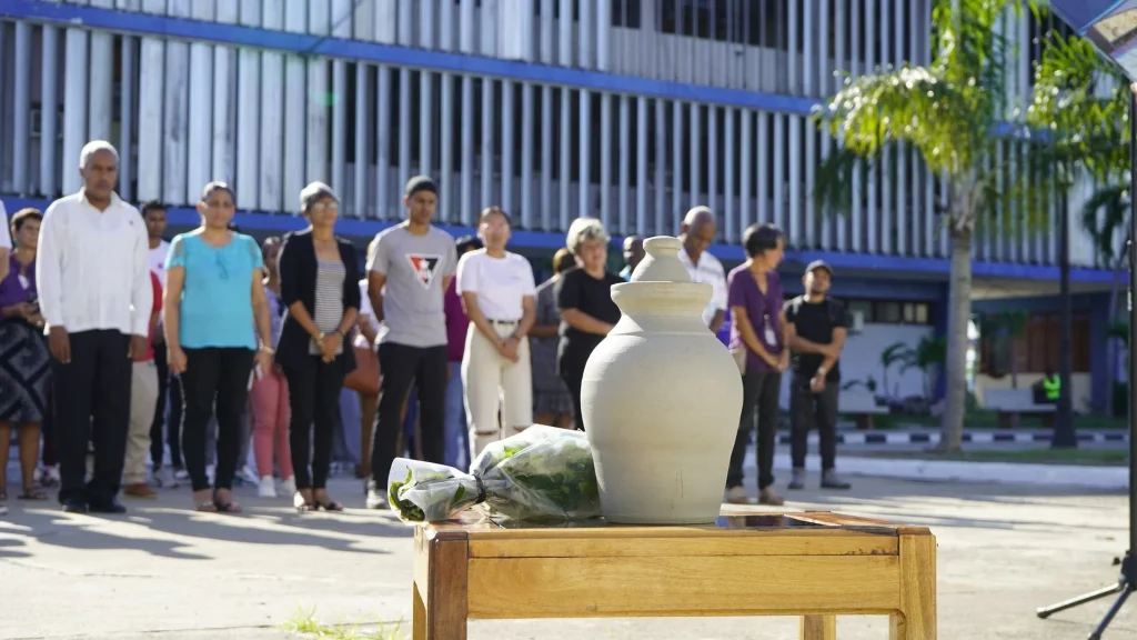 Compañeros, amigos y miembros de la comunidad universitaria, acudieron al simbólico Monumento de los Mártires Universitarios para depositar las cenizas de María de Jesús Calderíus Fernández, Maruchi, como cariñosamente le conocen.