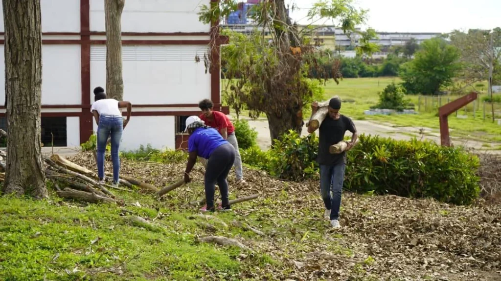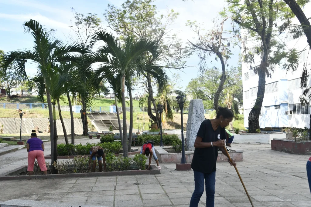En la residencia estudiantil Julio Antonio Mella y otras áreas de la misma sede también se trabajó hoy por borrar las marcas de Melissa. Ya el parque, tan dañado luego del evento, vuelve a dar luz entre los edificios.
